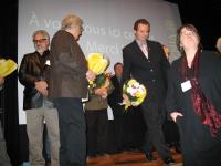 La projection du vidéo hommage qui permettait de voir l’œuvre de Carson sur grand écran a fasciné les invités. L’Ambassadeur international n’a pas perdu de temps… Charles Carson s’est envolé pour Paris le lendemain, pour une exposition à Sées, en France et c’est sur un extrait de : Un peu plus haut… un peu plus loin que l’artiste a reçu son obélisque et son parchemin honorifique à titre de maître-académicien. Un moment magique!