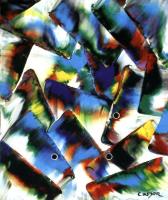 1) Artiste : Charles Carson Titre : Blue fish Médium : Acrylique sur toile Technique : Mosaïque Format : 30.5 X 25.5 Signé : en bas à droite