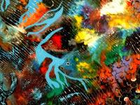 Las composiciones cromáticas de Charles Carson, poderosas y fascinante,nos recuerdan lo que escribía Kandinsky en 1910 en (Uber das geistige in der kunst); (Lo espiritual en el arte).El poder de los colores,en un cuadro,debe llamar fuertemente la atención del espectador,disimulando al mismo tiempo, el contenido profundo. Los colores del planeta de Carson no disimulan,ellos revelan lentamente,con igual profundidad,lo que parecían esconder a primera vista y logran mantener toda la atención del espectador quien más o menos consciente prosigue la búsqueda de nuevos elementos.