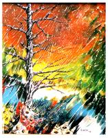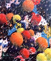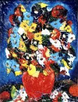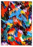 This means that everything becomes as a silhouette, merely suggested, and we can read if not interpret it by calling upon a minimum of pictorial references. This does not mean that this type of reading is compulsory at the first viewing, but rather that it stems from an optical phenomenon with, as its background, a sort of chromatic kaleidoscope which becomes like a veritable feast for the eyes of the viewer.