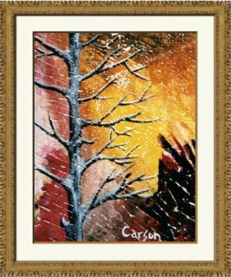 Artista:Charles Carson Titulo : Paysage d'automne Medio utilisado : Acrilico sobre lienzo Tecnica : Carsonismo Tamaño : 4.5 x 3.5 pulgado 11.4 x 8.9 centimetro Vendido