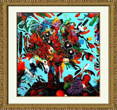 Artiste:Charles Carson titre : Fleurs enlacés aux chants des oiseaux parfumés Médium : Acrylique sur toile Technique : Carsonisme mouvement Format : 36 x 36 en pouces 91.4 x 91.4 en cm Vendu